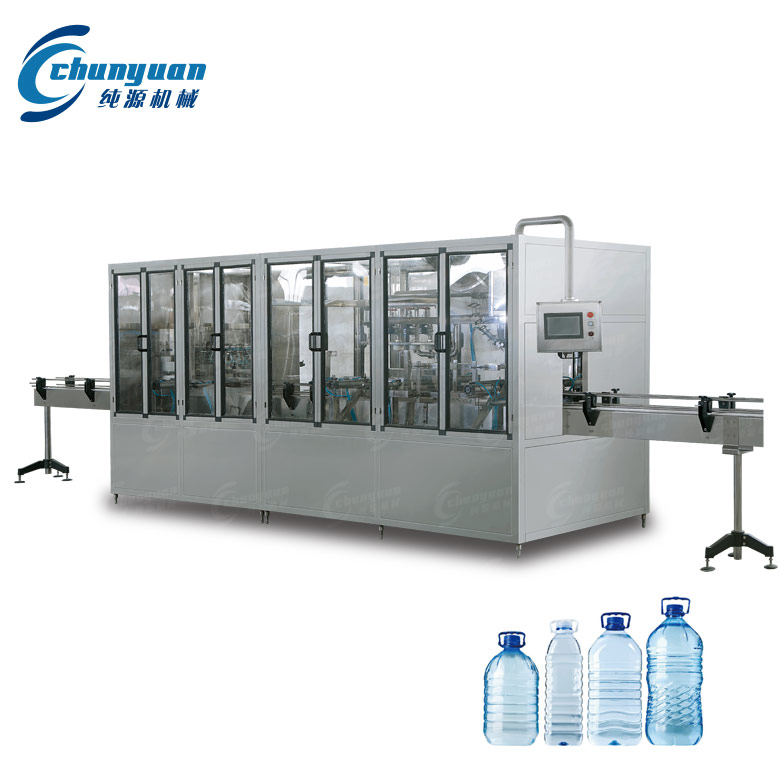 純源機(jī)械廠家供應(yīng)的一加侖直線式灌裝機(jī)是專供3升、4升、5升、6升塑料瓶,桶清洗、灌裝、封蓋的生產(chǎn)設(shè)備。主要用于純凈水、飲用水、礦泉水的灌裝。一加侖直線式灌裝機(jī)集沖洗灌裝封蓋于一體,特點(diǎn)是穩(wěn)定的生產(chǎn)能力,結(jié)構(gòu)簡單,易于操作。