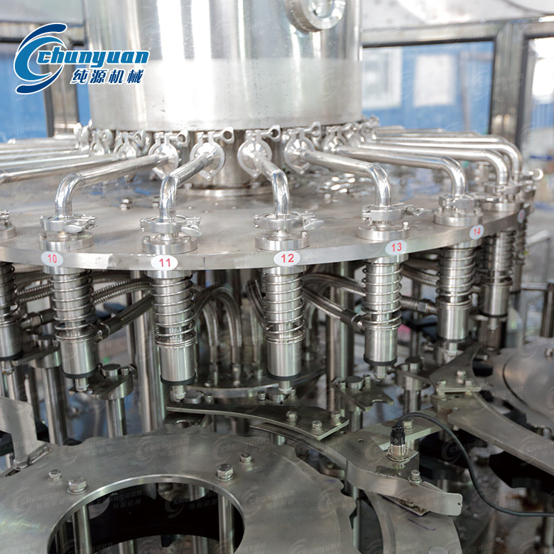 酵素果蔬汁灌裝設(shè)備是純源機(jī)械采用卡瓶頸傳動技術(shù),實現(xiàn)全自動沖瓶、灌裝、封蓋等工序;該酵素飲料機(jī)械自動化程度高;配有完善的溫度控制系統(tǒng)和回流系統(tǒng),設(shè)有完善的灌裝設(shè)備自動清洗系統(tǒng)及控制程序,與液體接觸的零件全部采用優(yōu)質(zhì)不銹鋼材料及食品級橡膠。