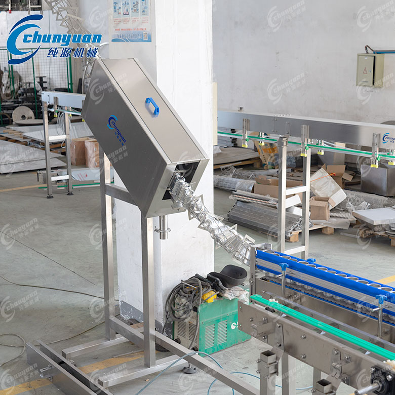 易拉罐卸垛設(shè)備通過(guò)特定的機(jī)械結(jié)構(gòu),將堆疊于棧板上的空罐,由下而上一層層的提升并推至輸送機(jī)上。整個(gè)過(guò)程由自鎖式升降系統(tǒng)裝置控制,能單獨(dú)調(diào)整上升或下降的速度,以適應(yīng)不同的操作需求???。卸罐動(dòng)作通常由電機(jī)帶動(dòng)鏈輪、鏈條裝置進(jìn)行,整層的空罐被推至網(wǎng)式輸送機(jī)上,然后回歸至準(zhǔn)備位置,繼續(xù)將下一層推出???。