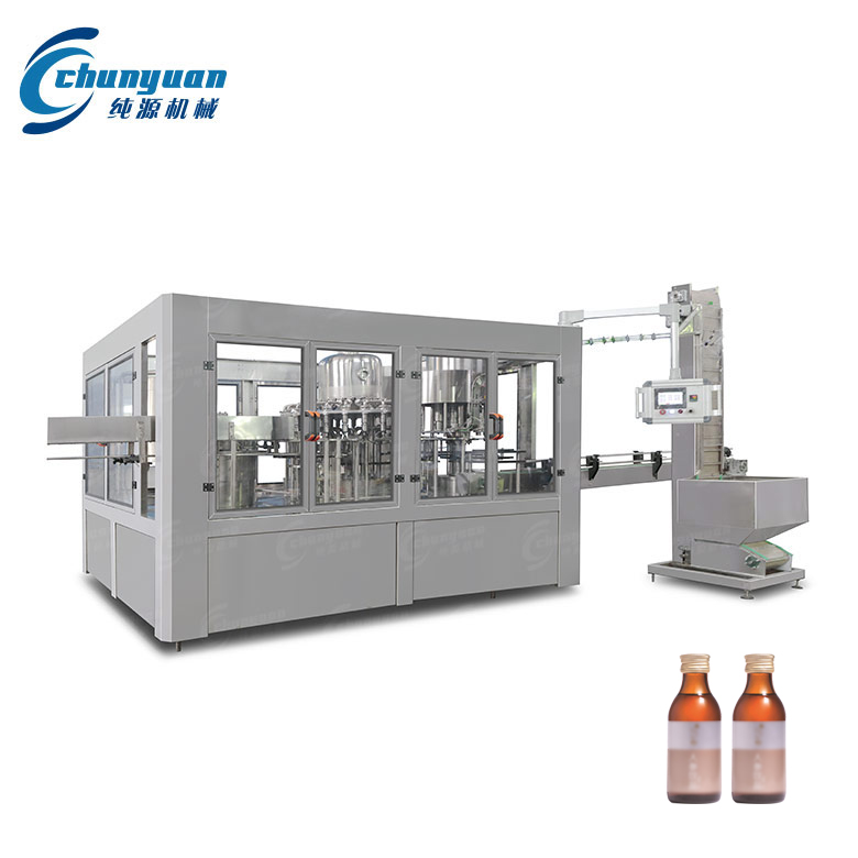 純源機械廠家供應的椰奶飲料灌裝機械是集封口灌裝-制蓋上蓋-電熱封口為一體的自動灌裝機組,主要適用于PP或PE瓶乳品植物蛋白飲料以及果汁類產品的灌裝封口。...