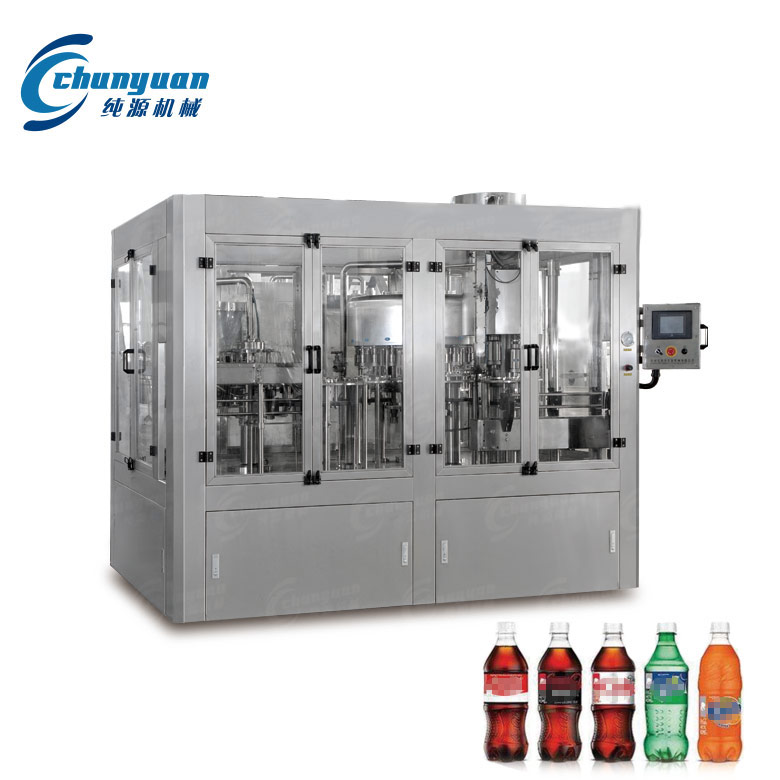 純源機械廠家生產(chǎn)的含氣飲料灌裝機械采用不銹鋼材料制成。含氣飲料設(shè)備具有結(jié)構(gòu)合理、工藝先進、操作方便、適用范圍廣等特點,是中小型飲料廠家理想的生產(chǎn)流水線機組。