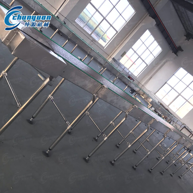 本礦泉水輸送帶結(jié)構(gòu)緊湊,控制系統(tǒng)完善,操作方便,自動(dòng)化程度高。
